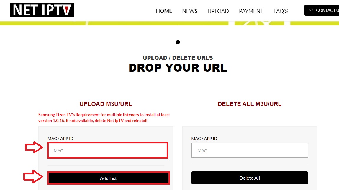 سپس وارد تصویر زیر میشوید در این قسمت لینک خریداری شده اکانت ست ایپی تیوی خود را در کادر قرمز زنگ وارد کنید و روی جمله ADD LIST اوکی کنید